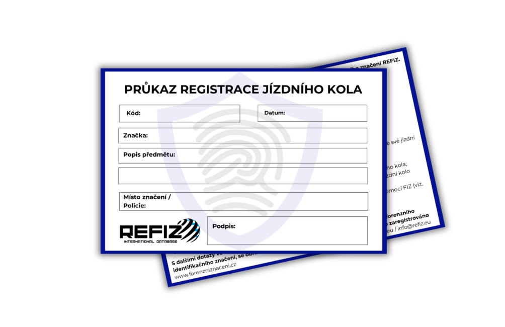 - Registrační karta se vejde do každé peněženky a díky ní máte jasný důkaz o vlastnictví označeného předmětu.