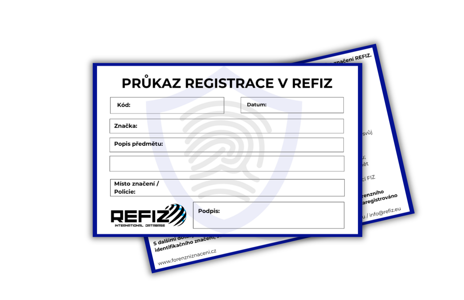 - Registrační karta se vejde do každé peněženky a díky ní máte jasný důkaz o vlastnictví označeného předmětu.