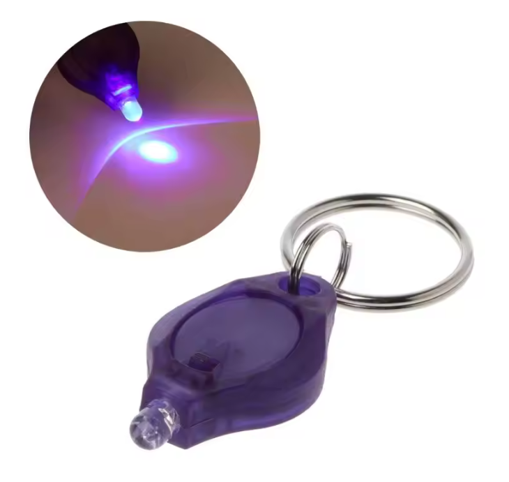 • Malá plastová klíčenka s UV světýlkem